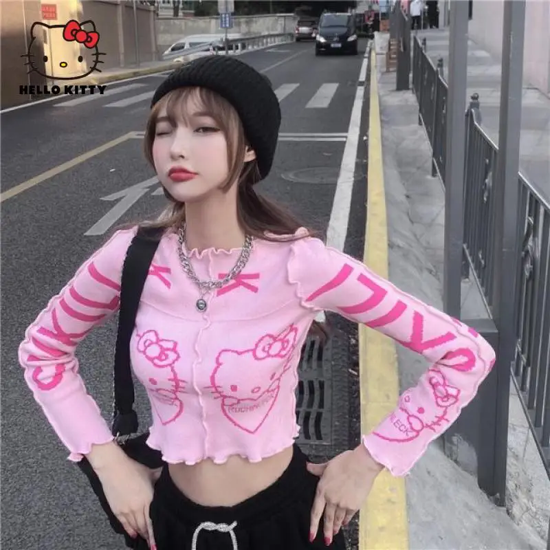 Anime Hello Kittys Knitted Sweater Fashion Women Cardigans Cartoon Kt Cat Crop Top Y2k Spring Autumn Long Sleeve For Girl Gift Aliexpress